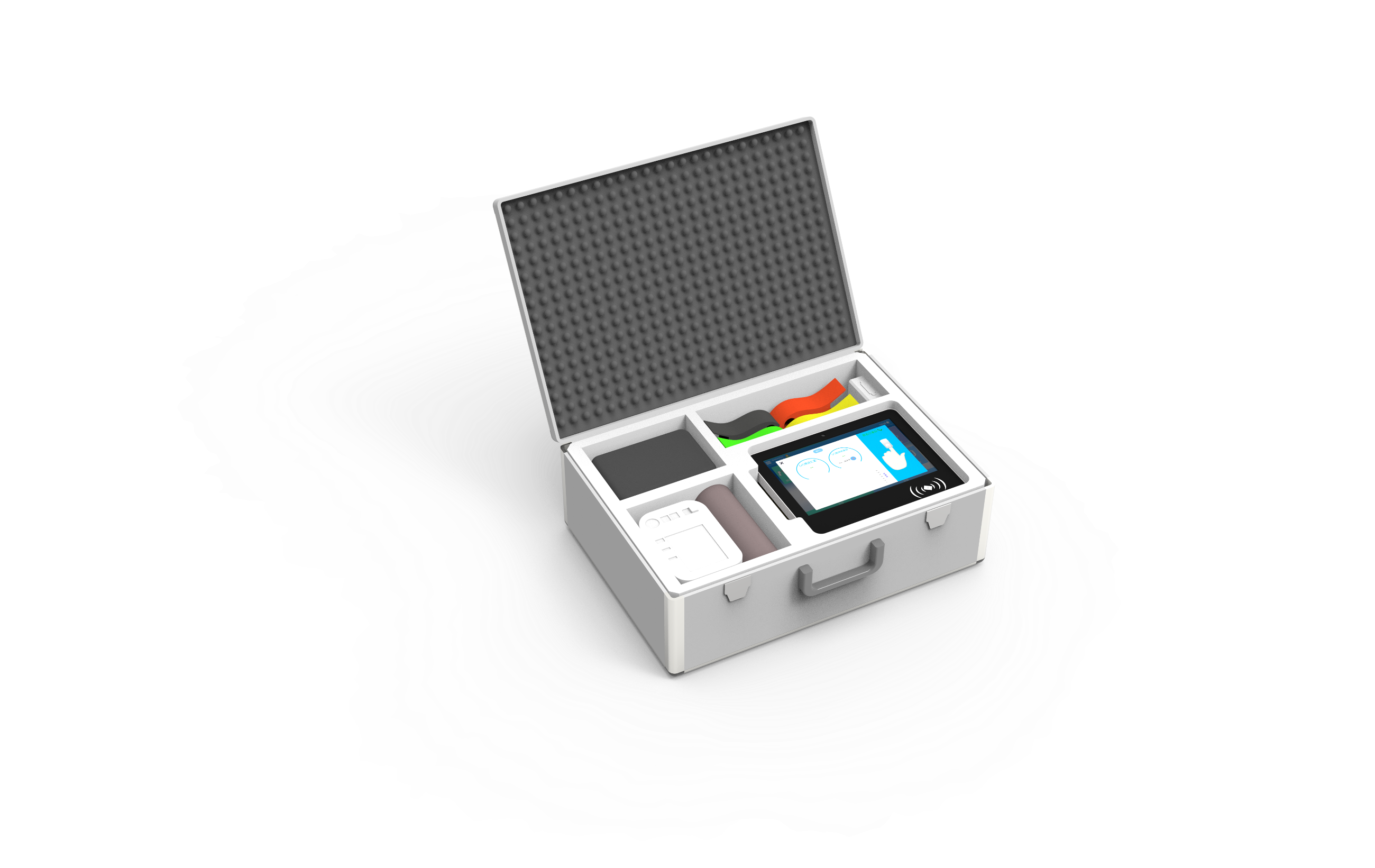 便携健康一体机Y2产品检测功能:1、标准配置功能:血压、脉率、血氧饱和度、体温(红外)、心电图(六导联、十二导联)、血糖、尿酸、总胆固醇、尿液分析2、可拓展检测功能:身高体重、中医体质辨识、单导心电产品特点1.手提箱式设计、小巧携带方便。 2.功能模块化,可自由组合选择3.全程动画、语音引导自助操作,刷身份证、或微信扫码建档测量。 4.身份识别:身份证、手机号、微信扫码、人脸识别5.防爆电容触摸: